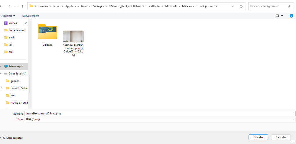 C:\Users\{nombre-de-usuario}\AppData\Local\Packages\MSTeams_8wekyb3d8bbwe\LocalCache\Microsoft\MSTeams\Backgrounds