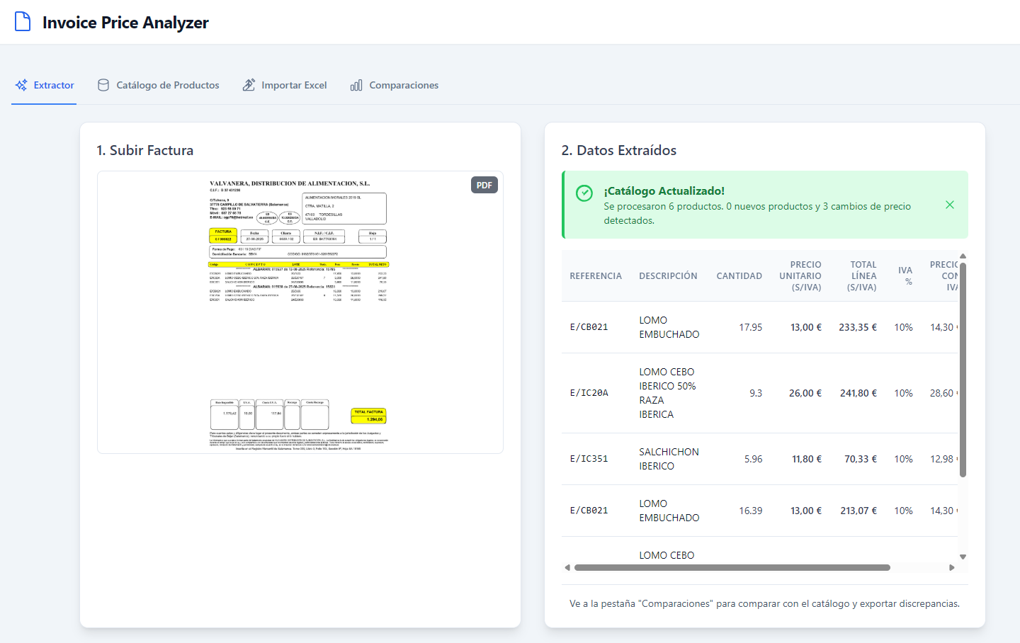 Si hay cambios de precio creamos un sistema para que puedas actualizar en tu propio programa de facturación los precios que te interesen